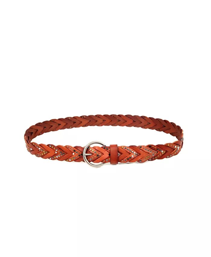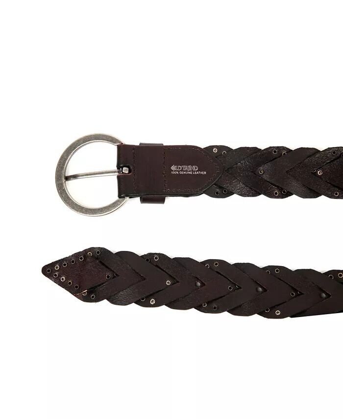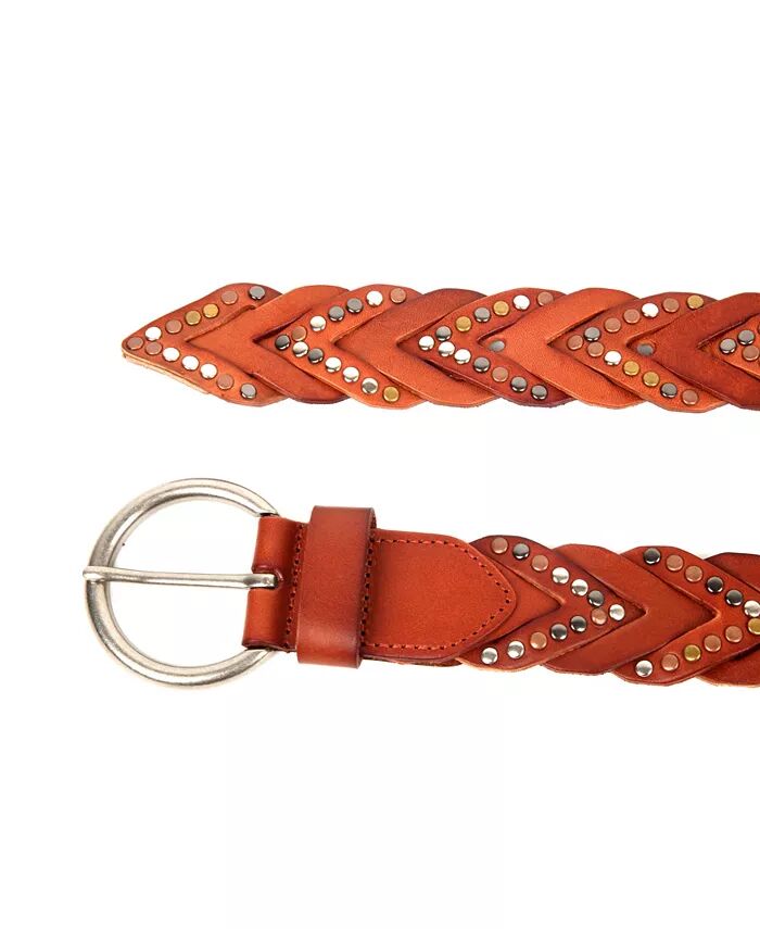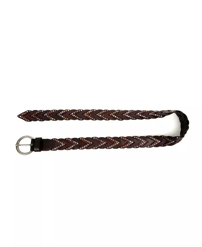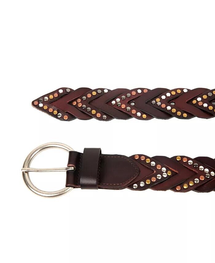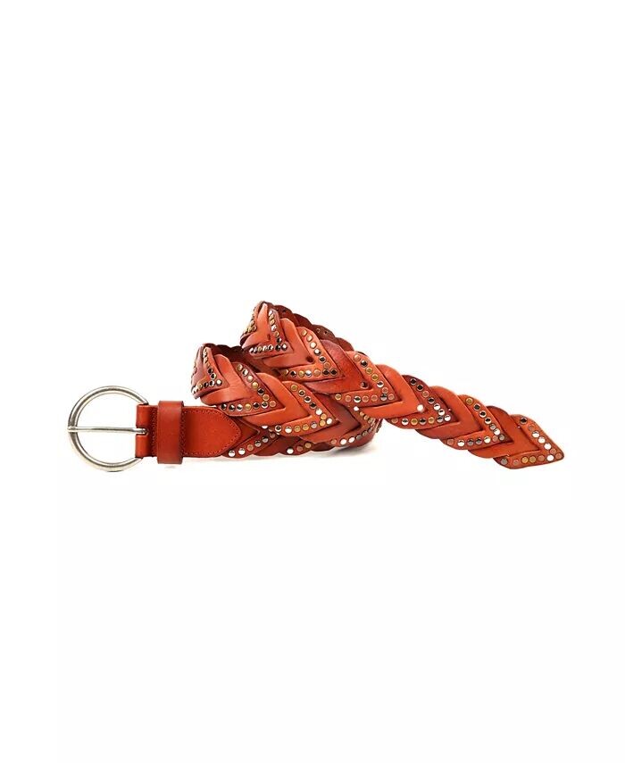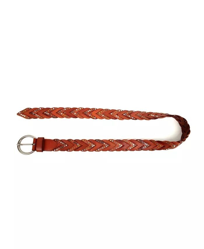 Этот ремень из кожи Barracuda выполнен из классической плетеной состаренной кожи и украшен красивыми заклепками по всему периметру.