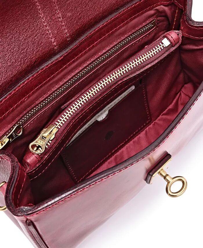 Размеры: 9"Д x 2,5"Ш x 6"В Средний Высота ремешка: 18-24", регулируемая Застежка-поворотный замок Приблизительный вес: 1,8 фунта. Этот товар, купленный онлайн, должен быть возвращен продавцу только по почте. 100% кожа, 100% хлопок Протирать Импортный