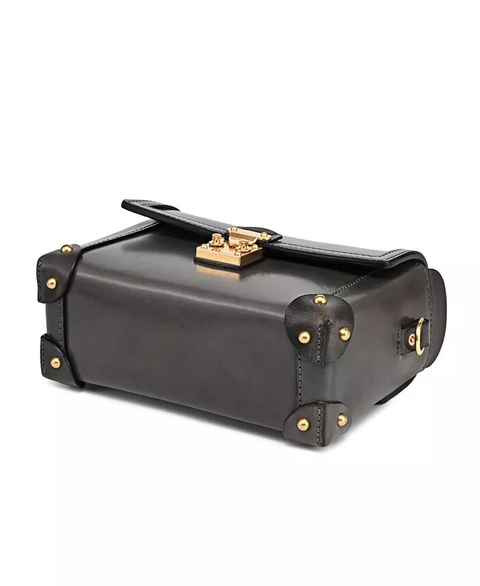 OLD TREND Azalea Vintage Leather Case Crossbody выделяется как сумка в форме куба с полированной отделкой, стилизованная под мини-сундук. Она имеет откидной клапан с надежной застежкой-защелкой и широкое отверстие для легкого доступа к своему просторному отделению. Детали ручной прострочки и кожаные нашивки с заклепками защищают каждый угол, что делает ее идеальной как в качестве вневременной винтажной сумки через плечо, так и в качестве шикарного ящика для хранения ценных вещей.