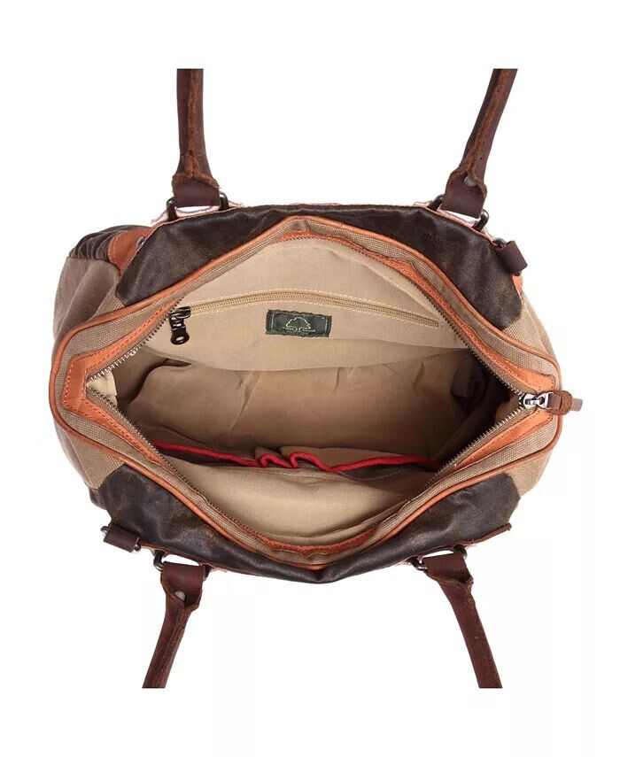 Прочный профиль из натуральной кожи и холста с закругленными ручками обещает долговечный стиль в стиле casual-шик, а просторное внутреннее пространство обеспечивает достаточно места для хранения вещей.