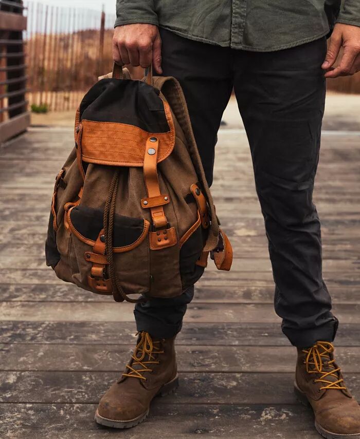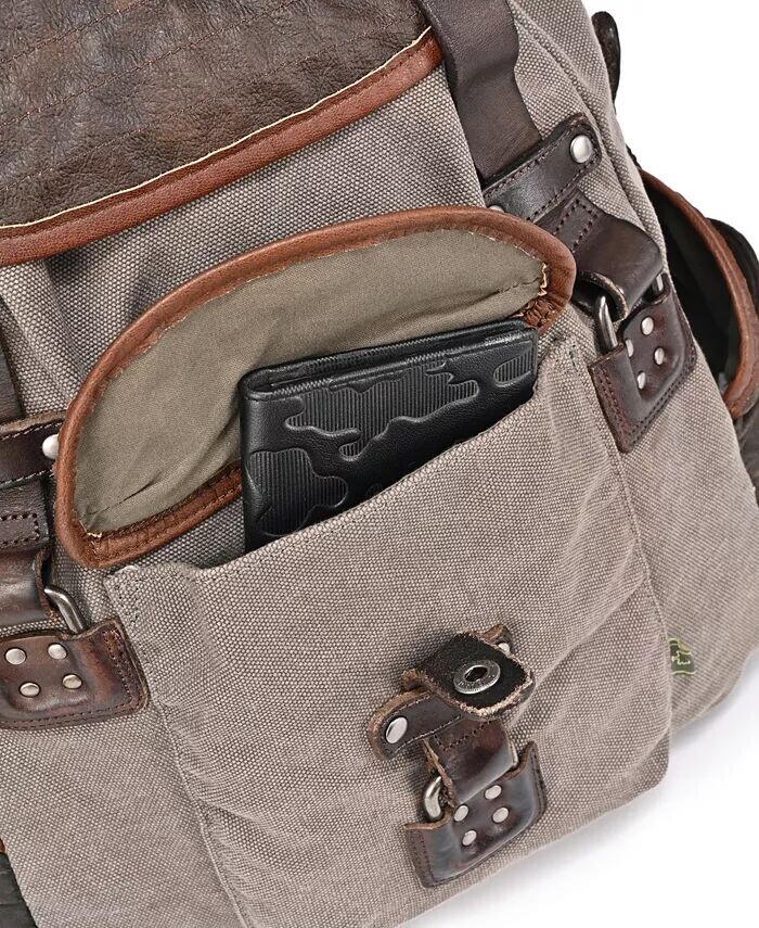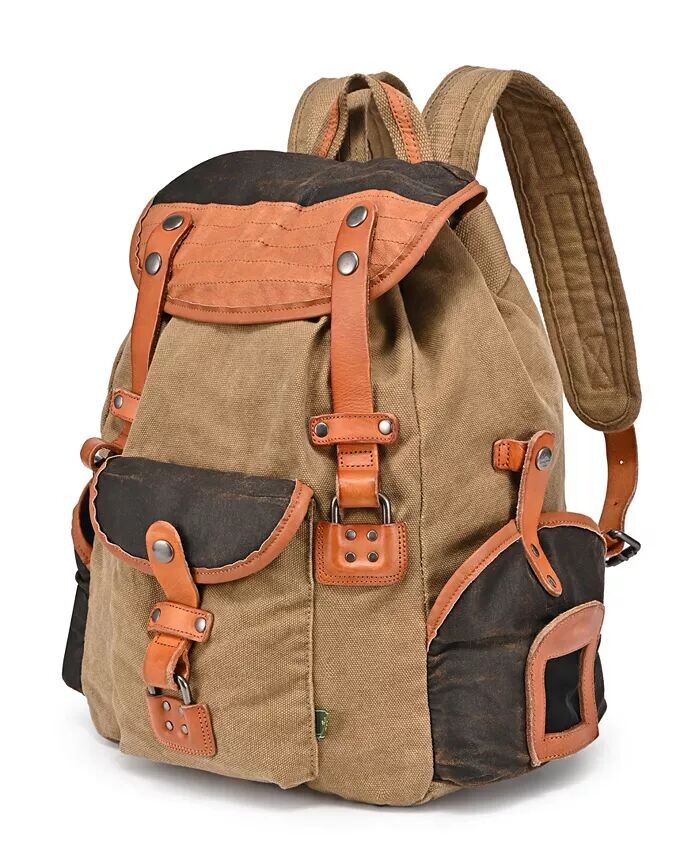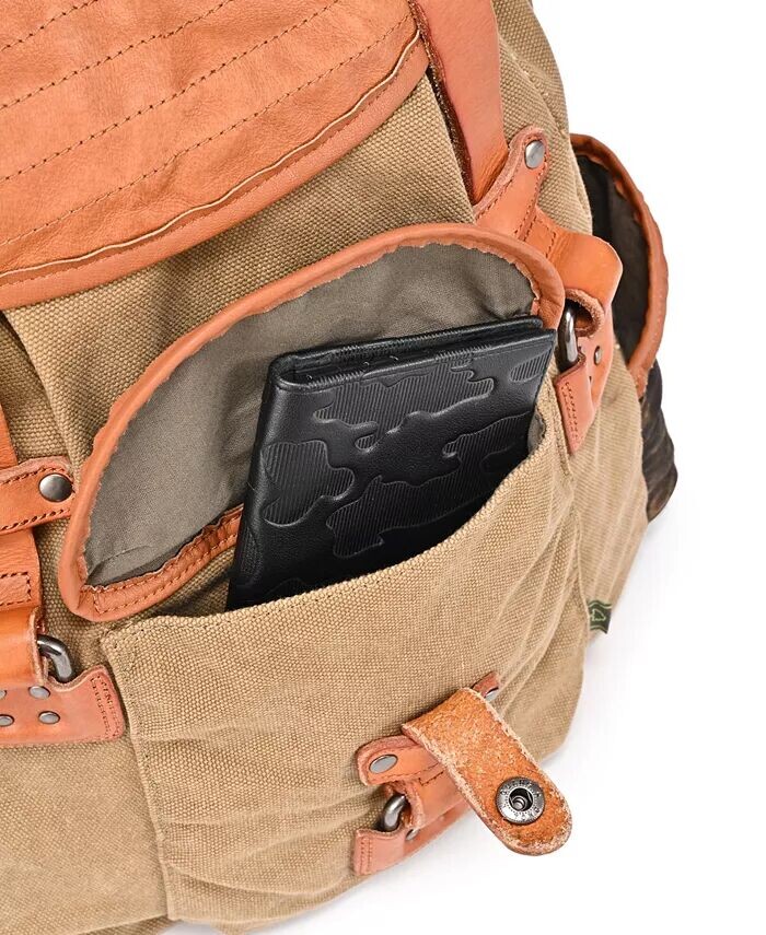 Прочная состаренная канва и вставки из натуральной кожи создают винтажный образ, который сохраняется надолго. Наш просторный двухцветный рюкзак Tapa легко вмещает множество карманов.