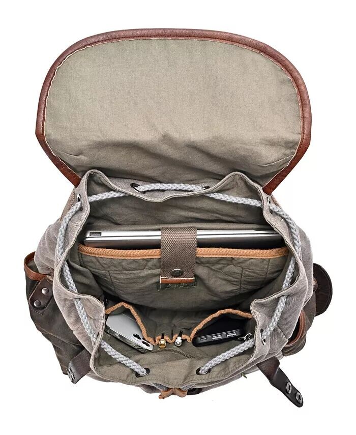 Прочная состаренная канва и вставки из натуральной кожи создают винтажный образ, который сохраняется надолго. Наш просторный двухцветный рюкзак Tapa легко вмещает множество карманов.