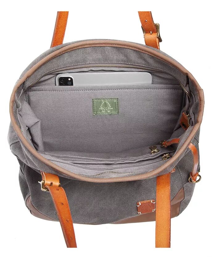 Внутри - хлопковая подкладка, 2 кармана на молнии, отделение для ноутбука с мягкой подкладкой, кольцо для ключей, вышитый логотип бренда TSD