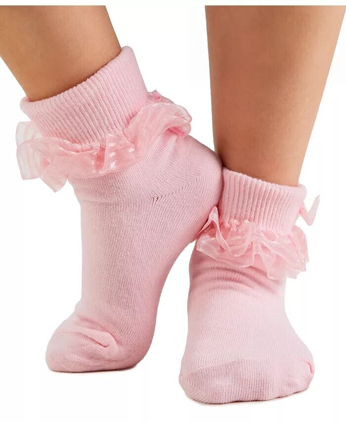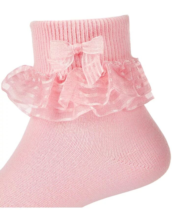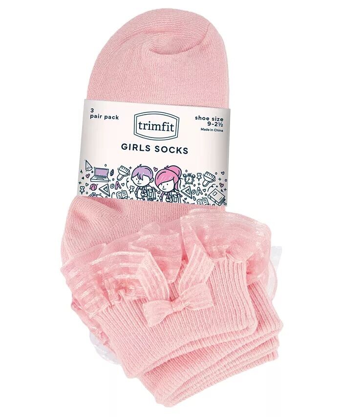 Упаковка из трех пар носков Trimfit для девочек или маленьких девочек. Включает две пары с ленточками и одну пару с фестончатым краем. Импортные