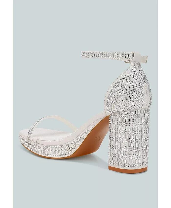 Босоножки, украшенные стразами, идеально подходят в качестве свадебной обуви для гостей благодаря своей тонкой, но отличительной отделке. Блочные каблуки и удобные стельки-подушки снимают напряжение и обеспечивают непринужденную посадку.