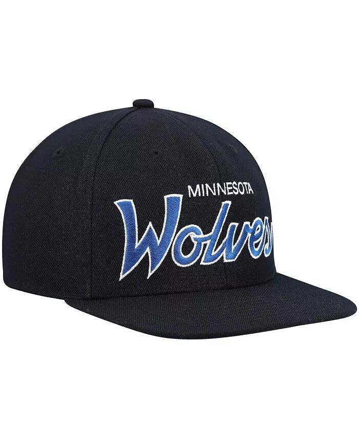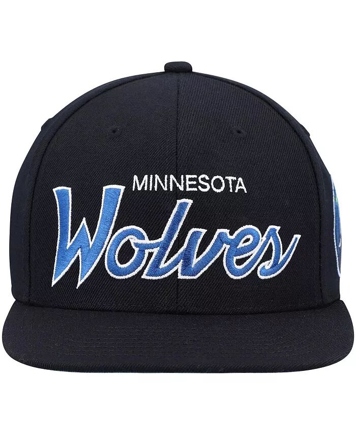 Мужская черная бейсболка Minnesota Timberwolves Hardwood Classics Script 2.0 Snapback Mitchell & Ness