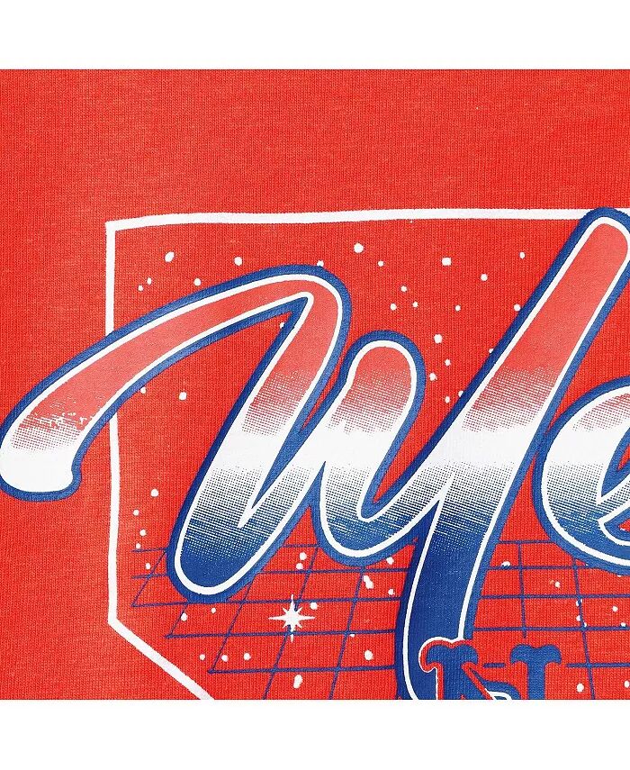 Эта очаровательная футболка Bleachers дает вашему ребенку новый взгляд на экипировку New York Mets. Она имеет удобный дизайн с заниженной талией и заниженную кромку для дополнительной защиты. Яркая графика New York Mets дополняет эту футболку для игрового дня, который будет таким же стильным, как и ваш юный фанат.