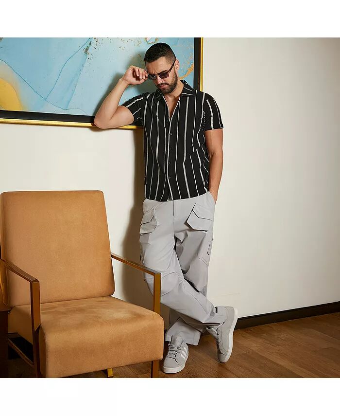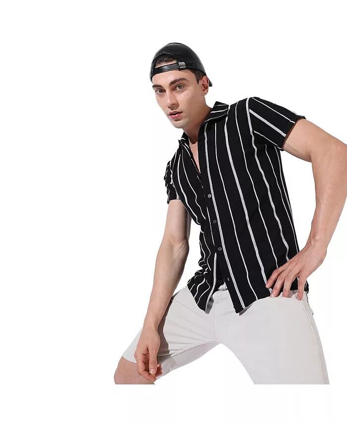 Мужская рубашка в черно-белую полоску Campus Sutra, черный