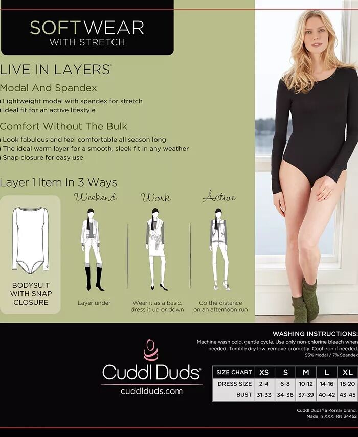 Невероятно мягкий и комфортный, универсальный боди Cuddl Duds - незаменимая вещь в многослойном образе.