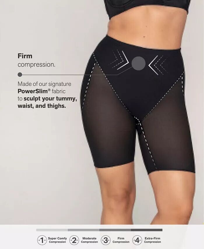 Утягивающие шорты с жесткой компрессией из ткани PowerSlim от Leonisa, которые корректируют живот, талию и бедра. Конструкция MagicUp сзади: специальные ленты и более легкая ткань для эффекта подтяжки ягодиц. Суперплоские ленты для ног не задираются, не скатываются и не видны под одеждой.