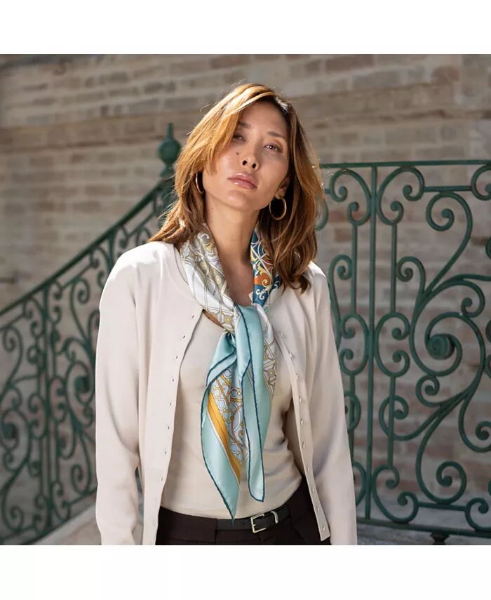 Классический размер платка: примерно 35" x 35". Платок, ставший знаменитым благодаря таким звездам, как Одри Хепберн, Софи Лорен и Грейс Келли, всегда добавит элегантности вашему образу. 100% шелковый атлас: роскошная мягкая ткань с блестящим блеском с одной стороны и нежной матовой отделкой с другой, которая кажется такой роскошной. В отличие от обычного полиэстерового атласа, наш атлас — это чистый шелк, предлагающий непревзойденную элегантность и качество. Ручная подгибка: для максимальной роскоши и изысканности подгибка подгибается и подшивается вручную. Чистая роскошь, натуральное окрашивание: мы используем нетоксичные растительные красители, которые сохраняют мягкость шелка, не содержат вредных химических веществ, которые могут раздражать вашу кожу (и полезнее для планеты!) 100% ручная работа в Италии: напечатано, раскроено и сшито на берегах озера Комо. Шелк Сухая чистка Сделано в Италии