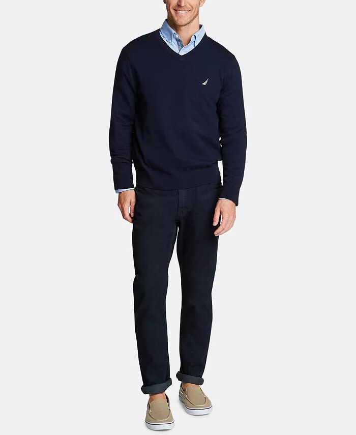 Мужской свитер Navtech Performance Classic-Fit Soft с V-образным вырезом Nautica, синий
