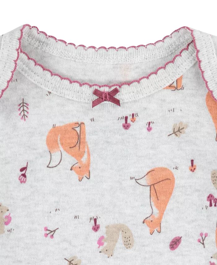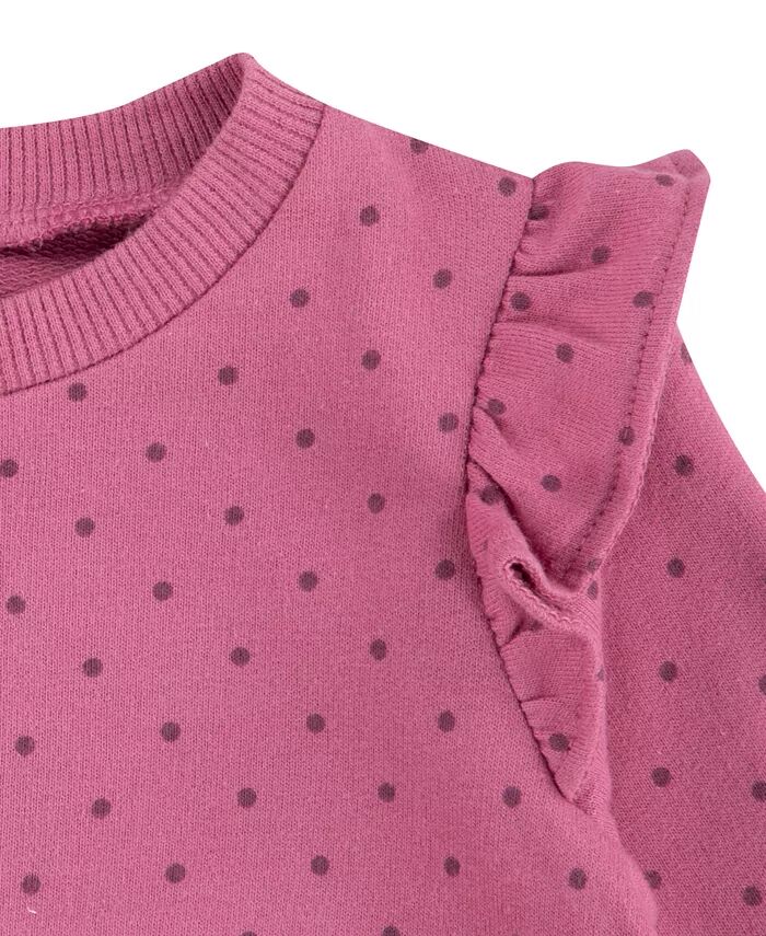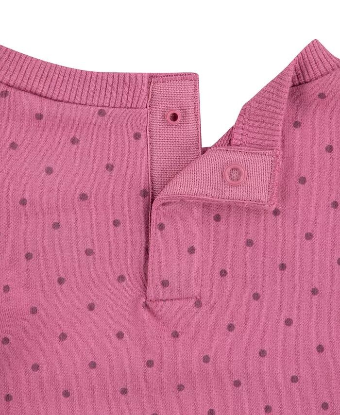 Хлопковый французский терри-экю с оборками и милым принтом прекрасно сочетается с боди с короткими рукавами. Застежки-кнопки и сплошной принт добавляют удобства и стиля. Дополните очаровательный ансамбль мягкими брюками с эластичным поясом.