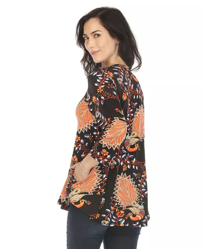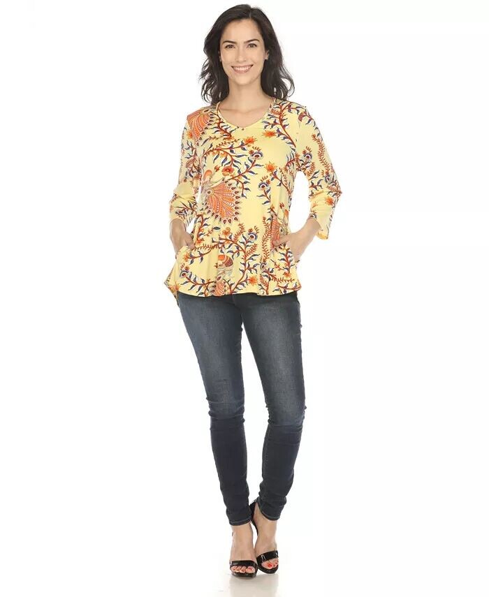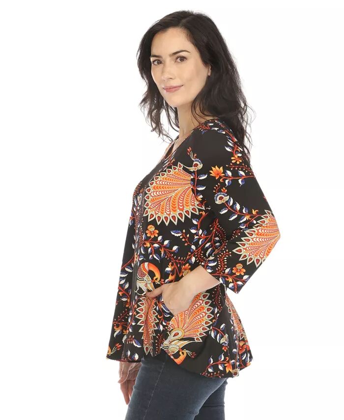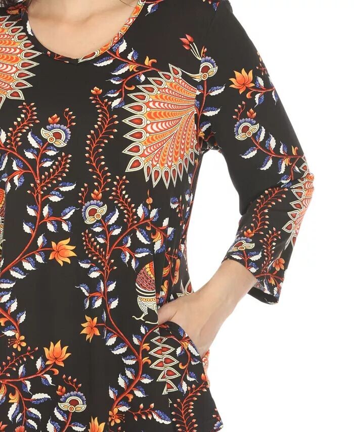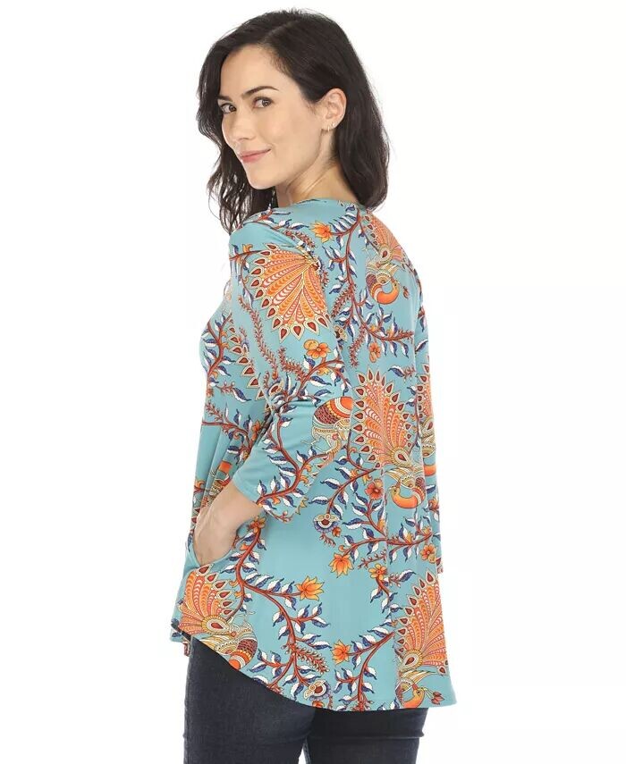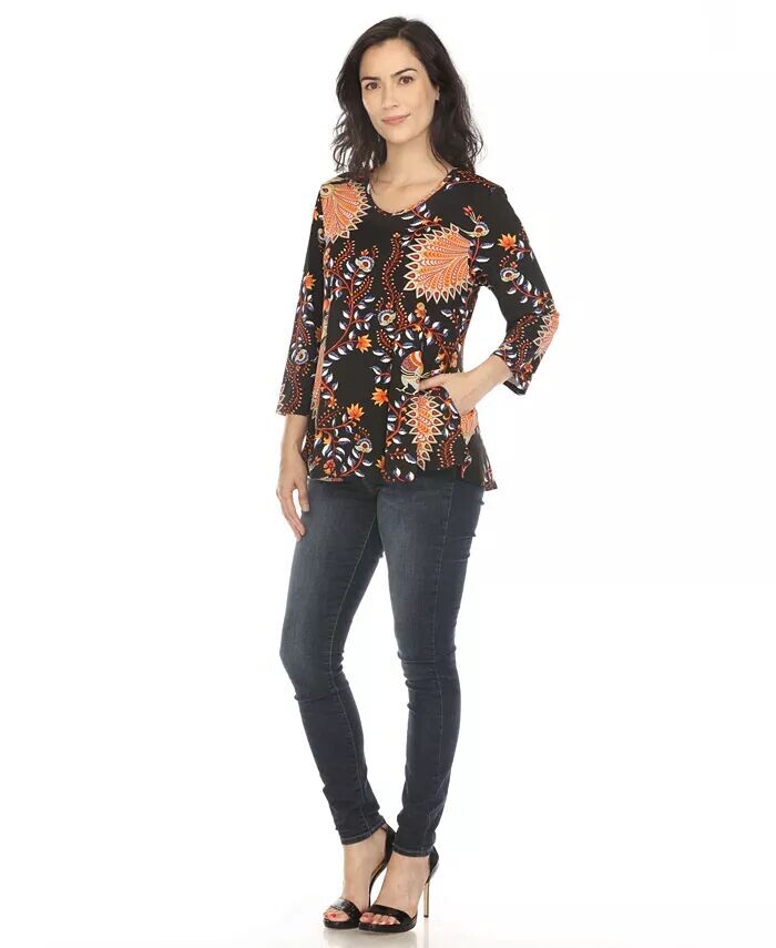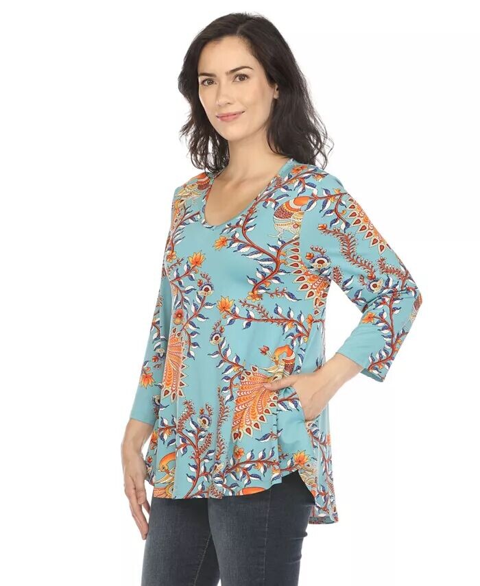 Обновите свою повседневную коллекцию с помощью этого топа-туники Swing с V-образным вырезом. Созданный для комфорта и стиля, он имеет привлекательный V-образный вырез и струящийся силуэт. Рукава 3/4 обеспечивают универсальное покрытие, а принт пейсли добавляет художественного колорита. Идеально подходит для джинсов, леггинсов или юбок на любой случай.