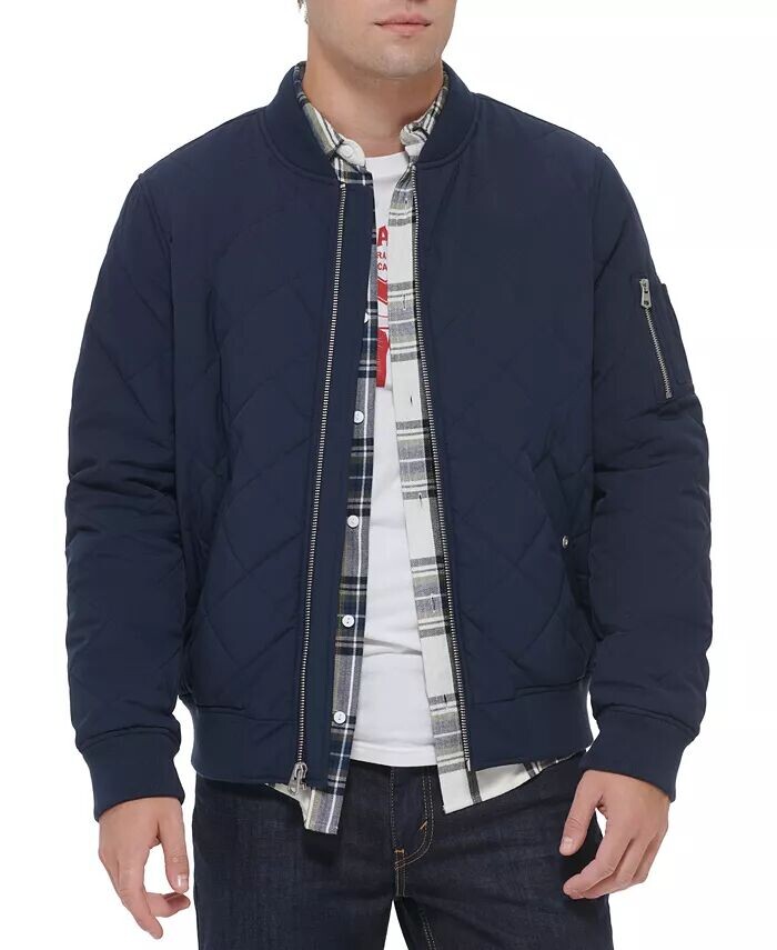 Эта легкая куртка-бомбер от Levi's с ромбовидным стеганым узором дополнит ваш образ для прохладной погоды стильным и комфортным образом.