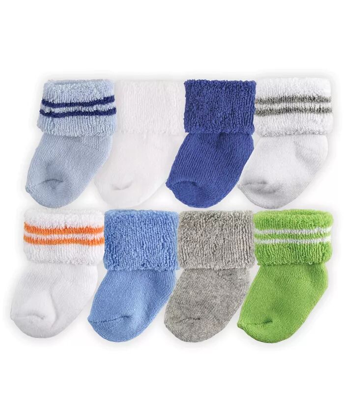 Доступная по цене высококачественная упаковка. Изготовлена из мягкой и удобной ткани. Импортная В комплект входят восемь махровых носков для новорожденных и малышей. Веселые, модные детские носки с симпатичными цветами и узорами.