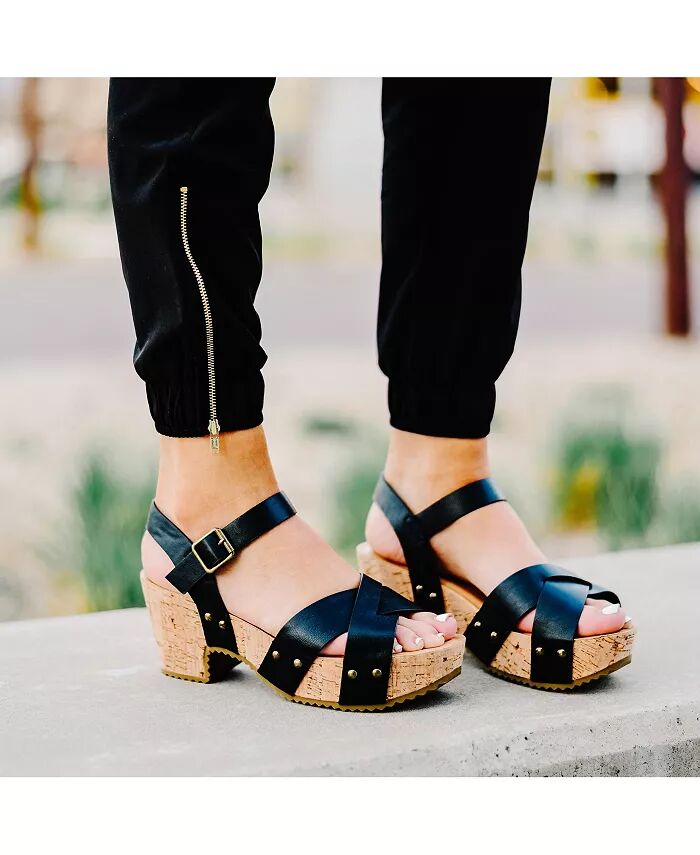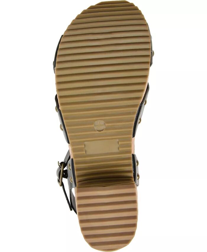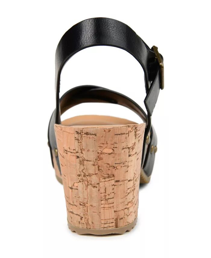 Перекрещивающиеся ремешки на носке и синтетический пробковый каблук-блок великолепны на босоножках Valentina из коллекции Journee. Эти шикарные босоножки отличаются смелыми деталями с заклепками и ремешком на щиколотке с модной квадратной пряжкой.