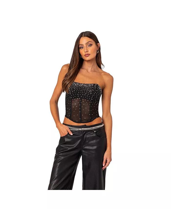 Женский прозрачный корсетный топ со стразами Edikted, черный