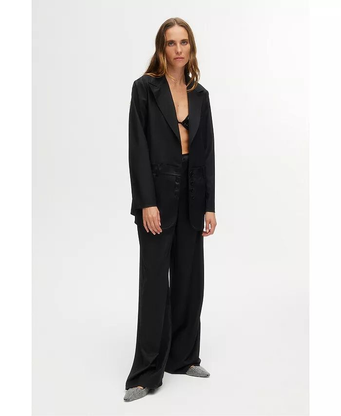 Дополните свой офисный образ этими динамичными брюками с широкими штанинами и модной высокой посадкой.