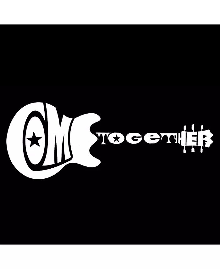 Музыка всегда была способом для людей мира объединиться в общей страсти. Покажите свою любовь и страсть к музыке с помощью этой футболки с надписью «come together» в форме гитары.