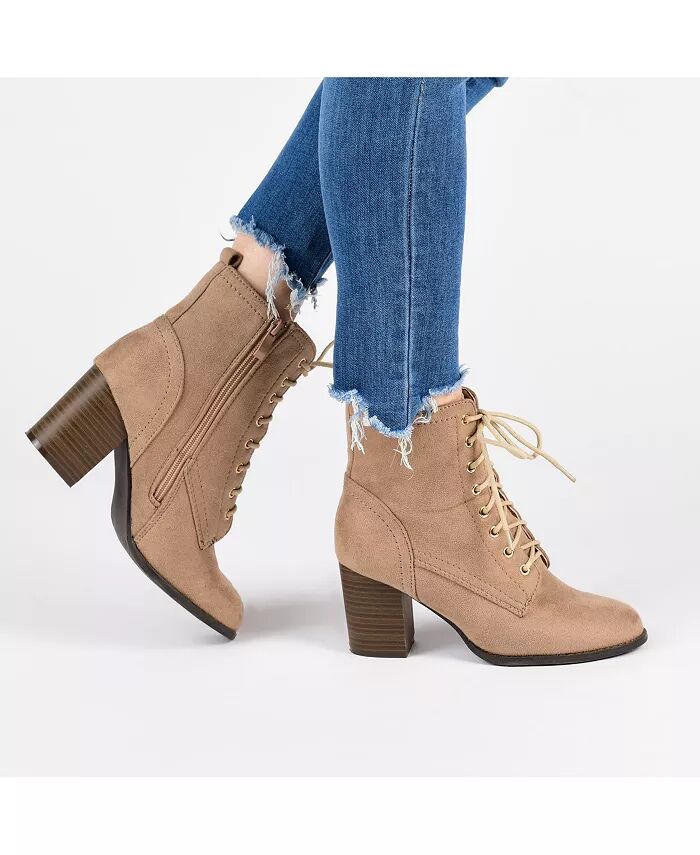 Наш взгляд на военные ботинки, Baylor by Journee Collection. Этот крутой стиль отличается мягким верхом из искусственной кожи, который поднимается выше щиколотки, и подчеркивается классической шнуровкой. Наборный блочный каблук, широкая стелька и мягкая стелька дополняют дизайн.