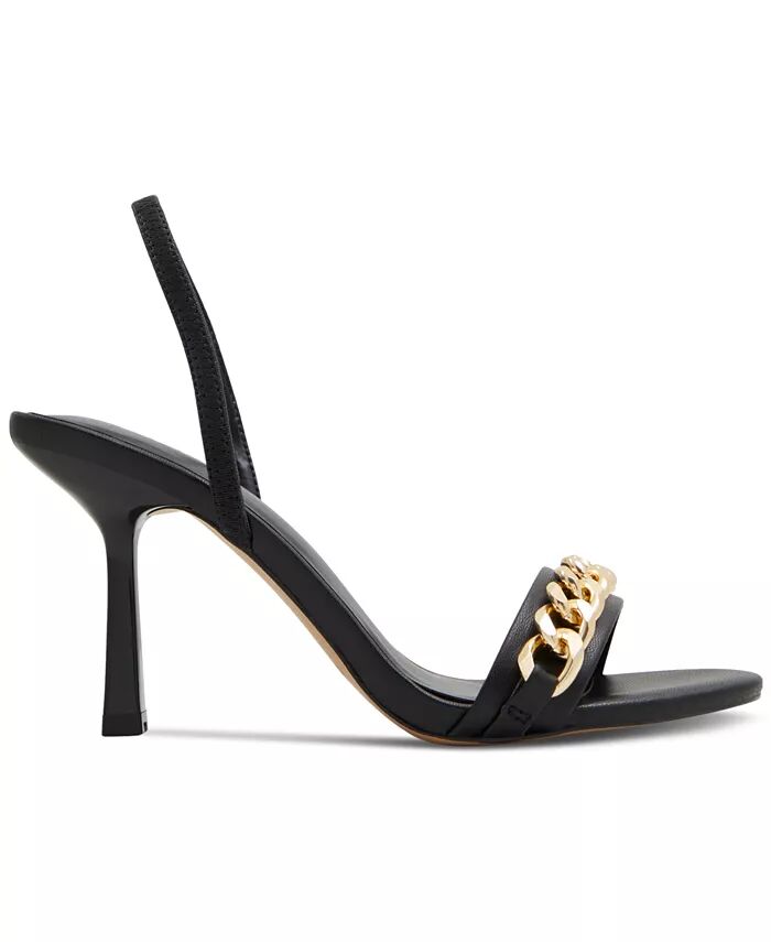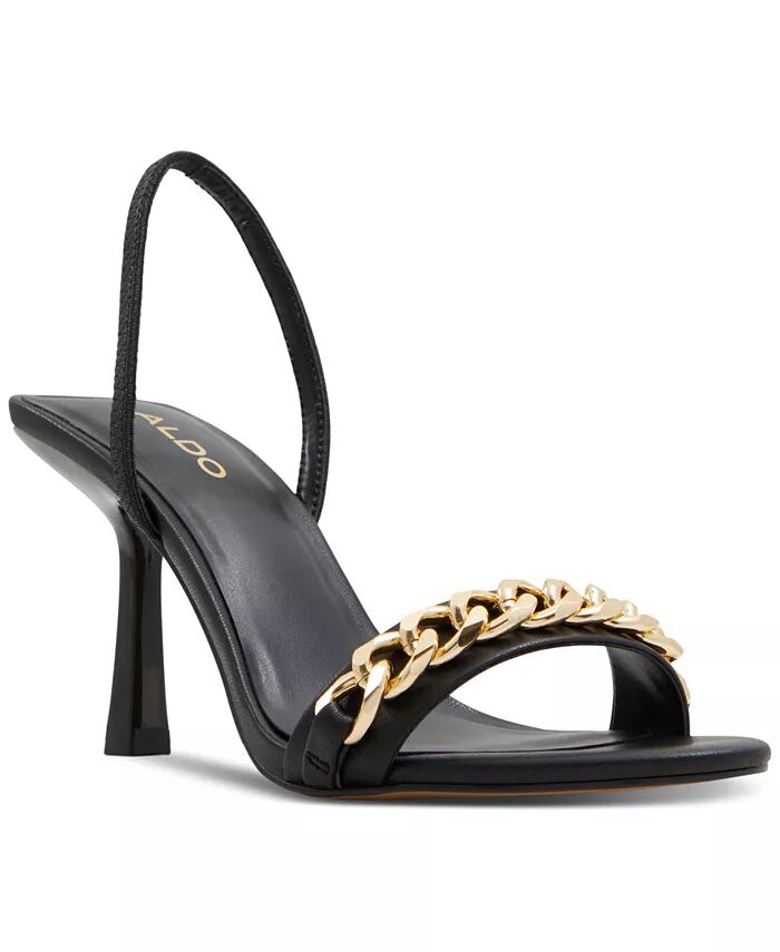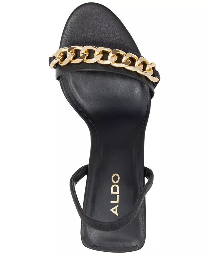 Массивные цепи добавляют золотистый блеск элегантному силуэту великолепных босоножек Saje от ALDO с открытой пяткой и застежкой-хомутиком.