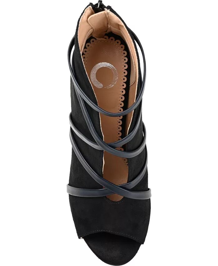 Шагните в шикарный стиль с ботильонами Samara от Journee Collection. Эти ботильоны с открытым носком были переосмыслены с помощью выреза из искусственной кожи и асимметричной детали из ремешка. Глубокий разрез и каблук-шпилька добавляют великолепную деталь, завершающую дизайн.