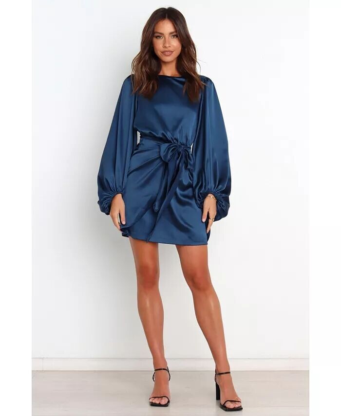 Это идеальное платье для вечеринки! Длина выше колена и высокий круглый вырез выглядят просто шикарно, а длинные рукава с эластичными манжетами обеспечивают комфорт. Отделка с атласным блеском придает этому платью роскошный вид, так что вы обязательно будете блистать и сиять на следующей вечеринке!