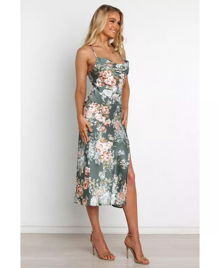 Заявите о себе на следующем особом мероприятии в этом потрясающем платье миди! С воротником-хомутиком, тонкими регулируемыми бретелями, атласным блеском и красивым цветочным принтом это платье обязательно привлечет всеобщее внимание.