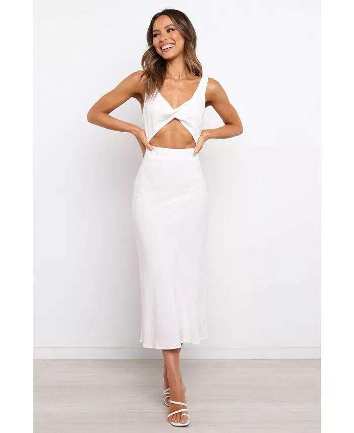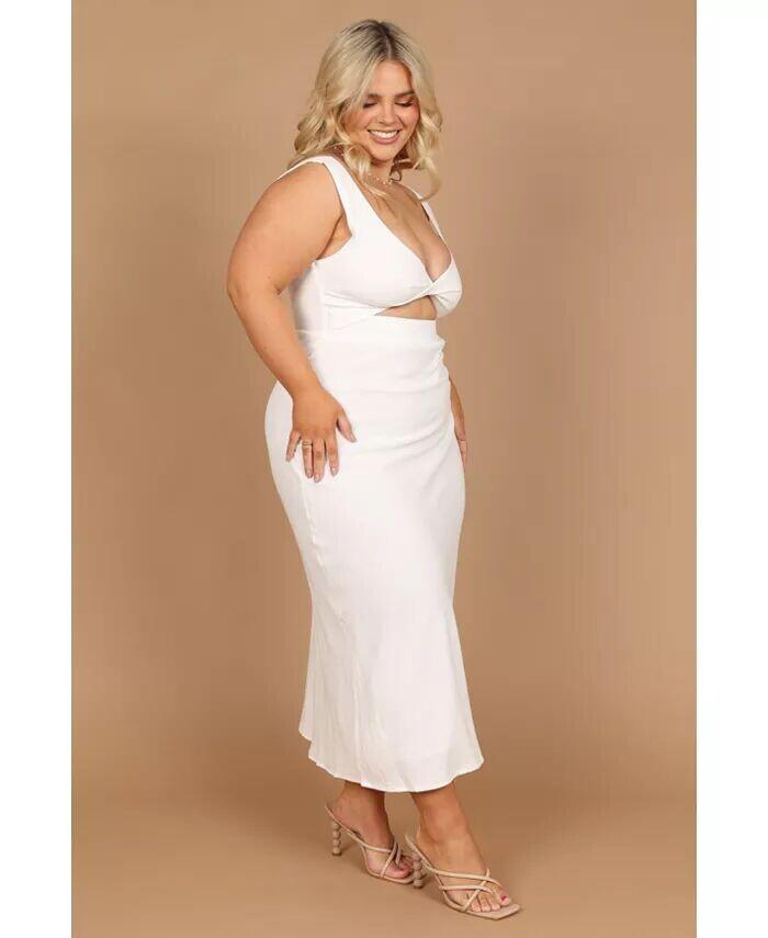 Поднимите свой стиль на новую высоту в этом шикарном платье миди-длины! Облегающий V-образный вырез создает вневременной силуэт, а деталь с перекрутом на груди с вырезом добавляет нотку гламура. Для дополнительной безопасности платье завершается застежкой на крючок и невидимой молнией сзади.