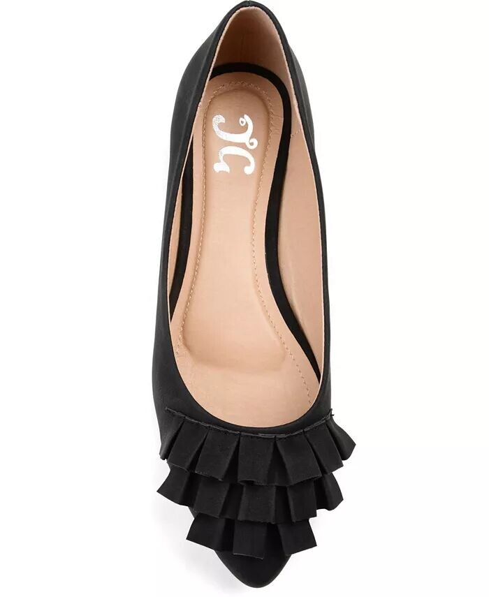 Шагните в шикарный стиль с балетками Journee Collection. Эта обувь имеет классический заостренный носок с оборчатым дизайном. Подошва выполнена из красивой искусственной кожи, которая сохраняет форму силуэта. Это идеальная модель для любого случая.
