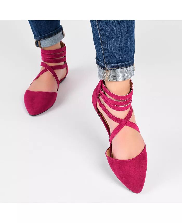 Шагните в стильный дизайн с балетками с ремешком на щиколотке от Journee Collection. Эти шикарные плоские туфли имеют верх из искусственной замши с ремешком, который охватывает щиколотки. Заостренный носок и закрытый каблук с акцентами на молнии завершают образ.