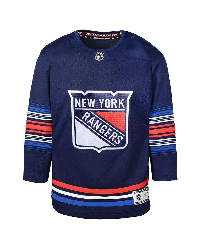 Ваш юный фанат будет чувствовать себя как его любимый игрок New York Rangers с этой альтернативной Premier Jersey. Эта майка вдохновлена теми же майками, которые Rangers носят на льду, дополненными культовым логотипом щита и красной, белой и синей окантовкой. Средний вес, крой позволит вашему ребенку чувствовать себя комфортно, пока он будет болеть за Blue Shirts вместе с вами.