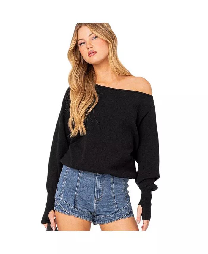 Женский свободный свитер с открытыми плечами Edikted, черный