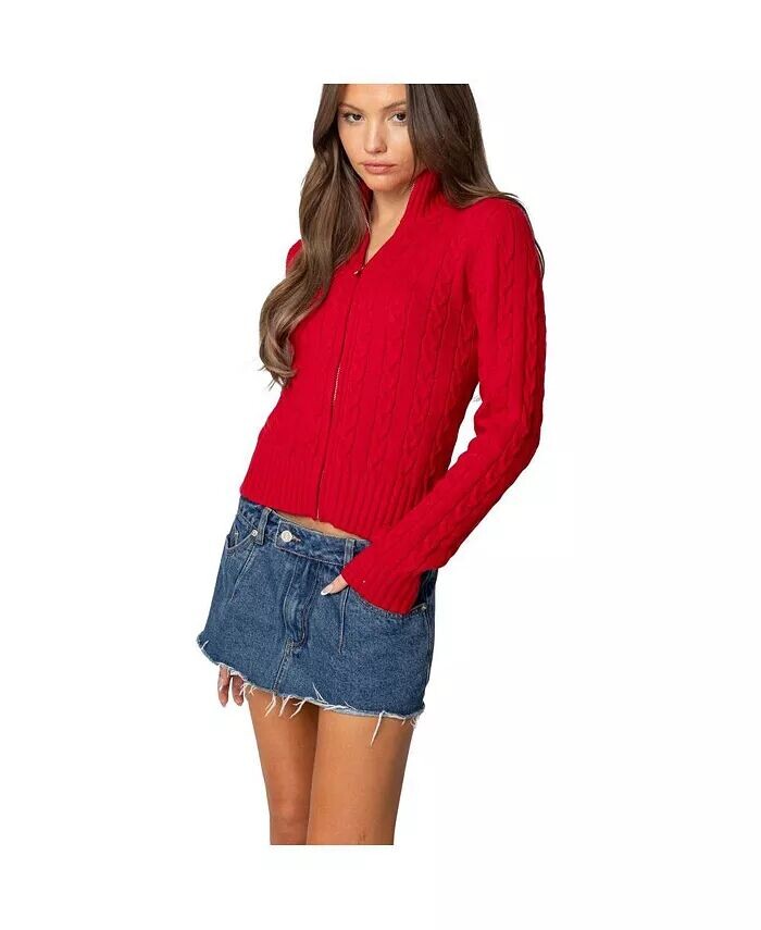 Женский кардиган Ryn Zip Up Cable Knit Edikted, красный