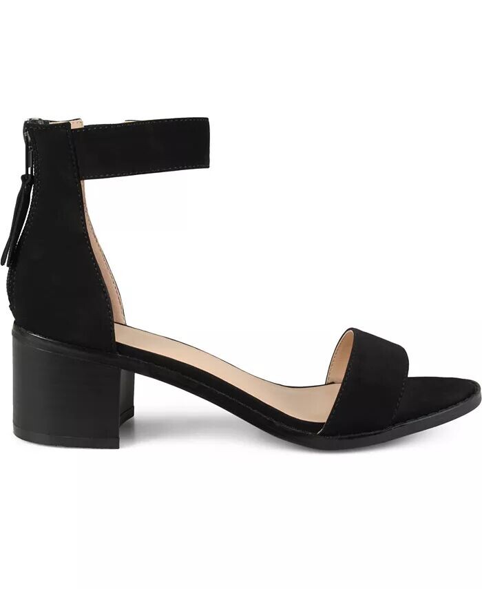 Покажите стильный дизайн с босоножками на каблуке с ремешками от Journee Collection. Эти босоножки с открытым носком имеют верх из искусственной кожи нубука с ремешками на щиколотке, которые соединяются с закрытыми задниками и подчеркивают молнию с кисточками.