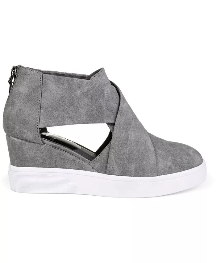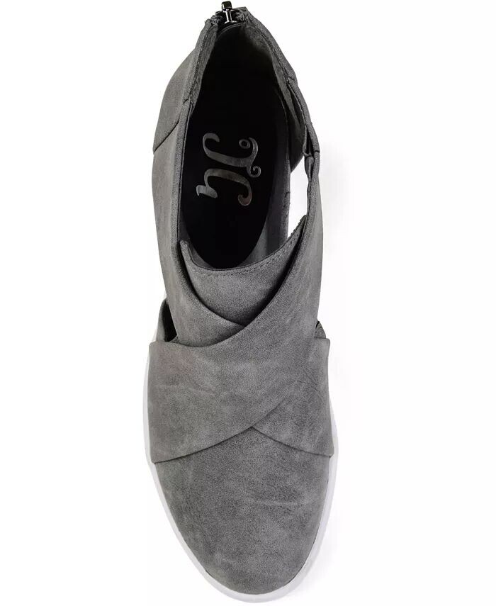 Выглядите непринужденно круто в модных кроссовках из коллекции Journee. Мягкий верх из искусственного нубука демонстрирует перекрещивающийся дизайн на мысках и стильные вырезы D'Orsay по бокам. Толстая подошва и танкетка создают стильный подъем, завершая образ.