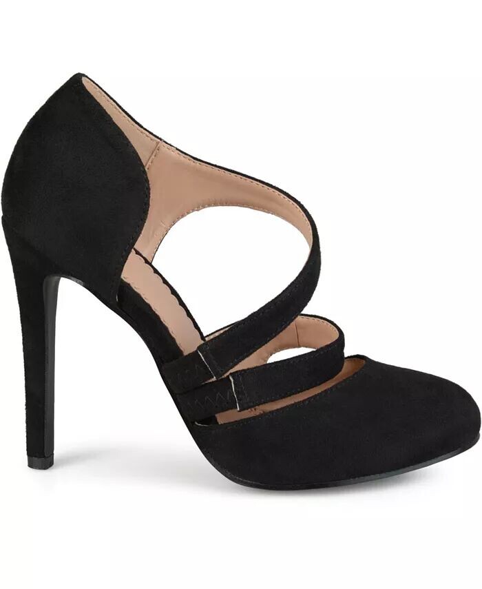 Шагните в шикарный стиль с кроссоверными туфлями-лодочками от Journee Collection. Эти туфли-лодочки с круглым носком имеют мягкий верх из искусственной замши с закрытыми задниками и стильным кроссоверным ремешком на союзке. Узкие шпильки на высоком каблуке создают соблазнительный силуэт.
