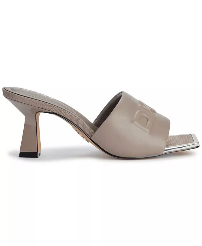 Женские босоножки DKNY Keke с тисненым логотипом на мыске, уравновешенным квадратным носком и расклешенным каблуком.