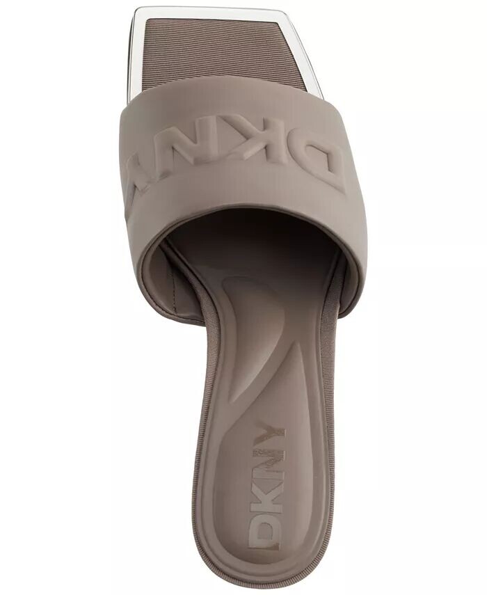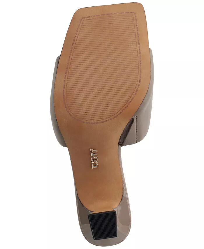 Женские босоножки DKNY Keke с тисненым логотипом на мыске, уравновешенным квадратным носком и расклешенным каблуком.