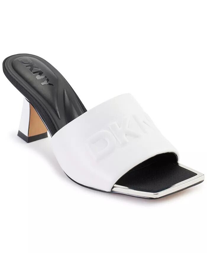 Женские босоножки DKNY Keke с тисненым логотипом на мыске, уравновешенным квадратным носком и расклешенным каблуком.