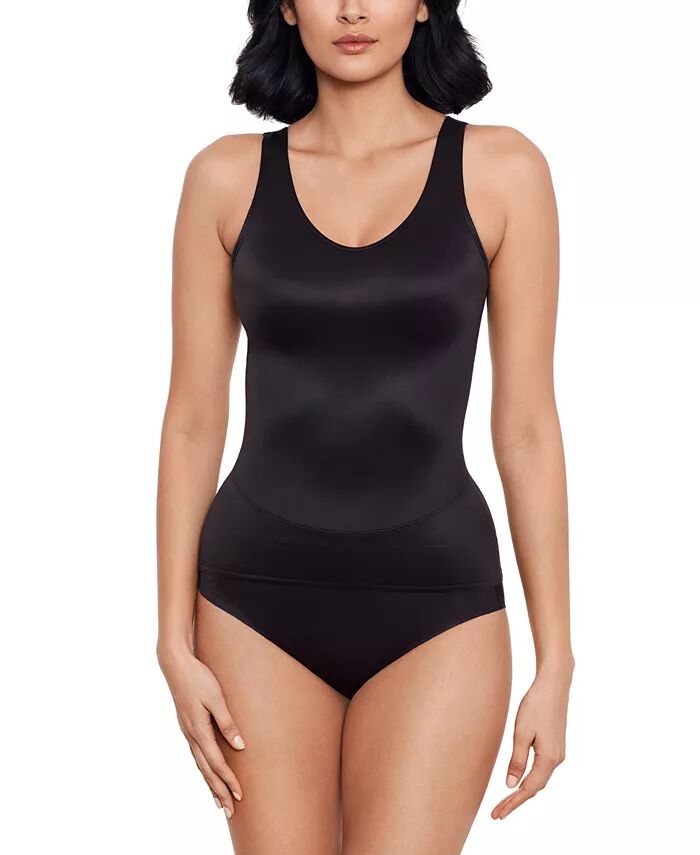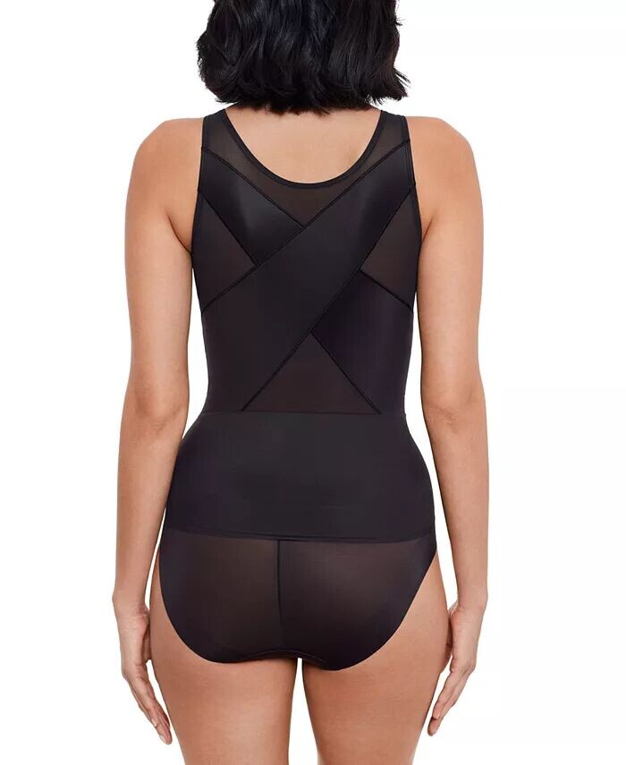 Топ-топ Miraclesuit со встроенным беспроводным бюстгальтером-полкой имеет сверхжесткую панель управления на животе и перекрещивающиеся панели на спине для дополнительной поддержки. Запатентованная силиконовая полоска Wonderful Edge помогает верхней части оставаться на месте. Модель #2433