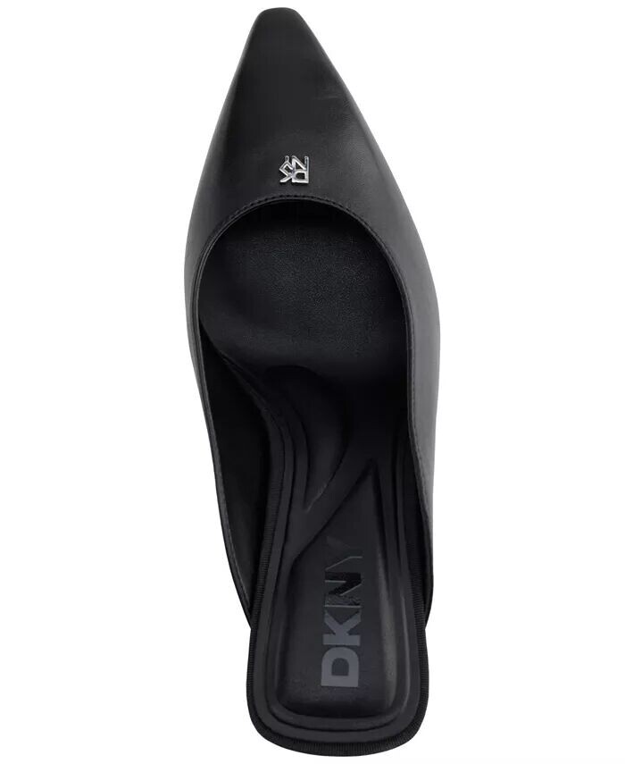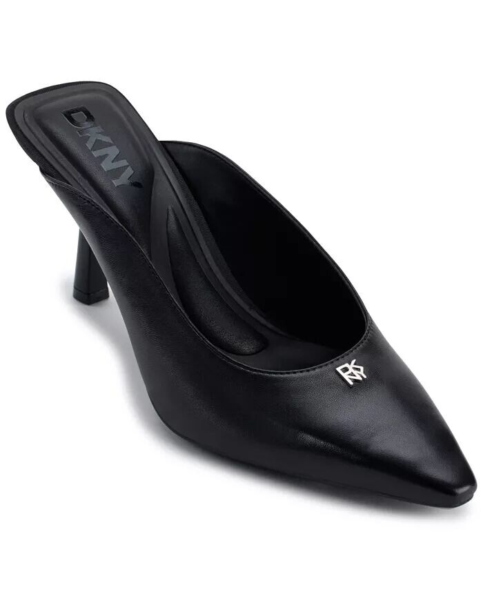Блестящая фурнитура с логотипом Netta от DKNY Women придает изящный вид этим туфлям-мюлям обрамленным тонким носком и зауженным каблуком.