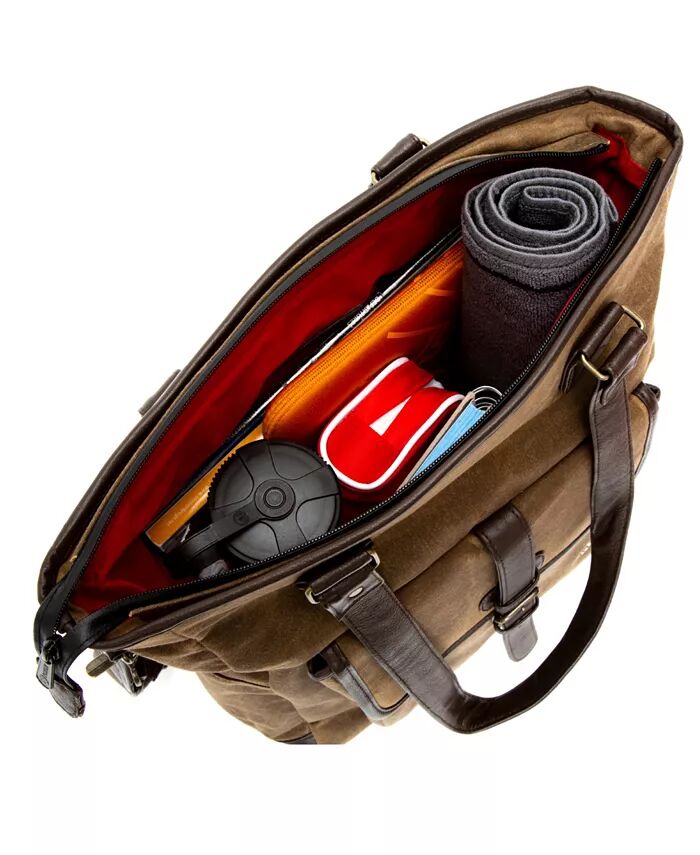 Сумка-тоут Amsterdam Waked, входящая в коллекцию вощеной парусины, имеет корпус из вощеной парусины, кожаную отделку и кожаное дно с латунными ножками.