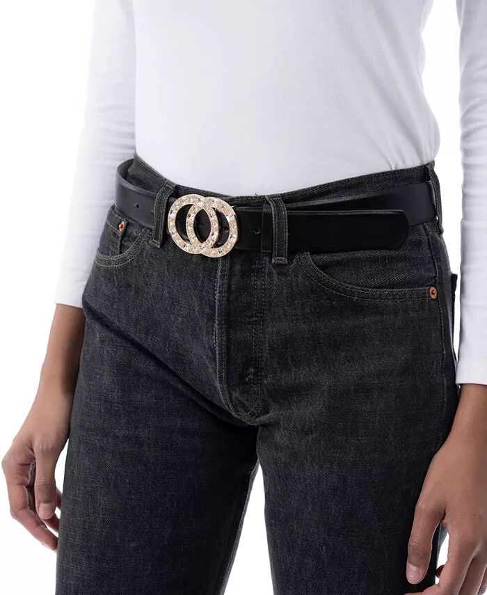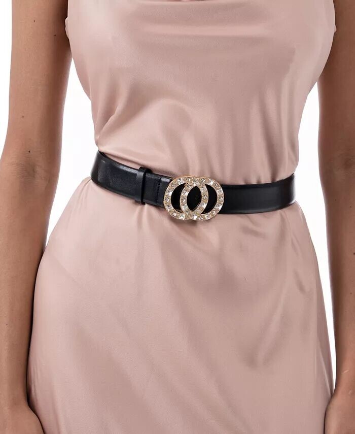 Добавьте яркости и стиля в свой образ с ремнем INC International Concepts с пряжкой в виде двух окружностей, украшенной стразами.