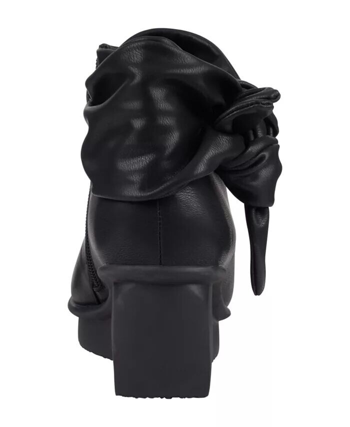 Застежка-молния сбоку для легкого надевания/снимания Миндаледовый носок Высота каблука - 2,5 дюйма Тип каблука: танкетка Высота голенища - 7 дюймов Окружность: прибл. 11 дюймов по обхвату голенища Бантик Нескользящая резиновая подошва Стелька из пены с эффектом памяти для дополнительного комфорта Полиуретан Ручная стирка Импортные