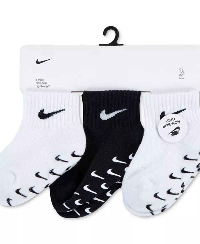 Носки с логотипом Gripper для малышей и малышей, 3 упаковки Nike, белый