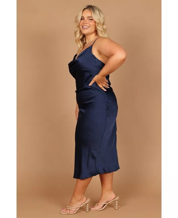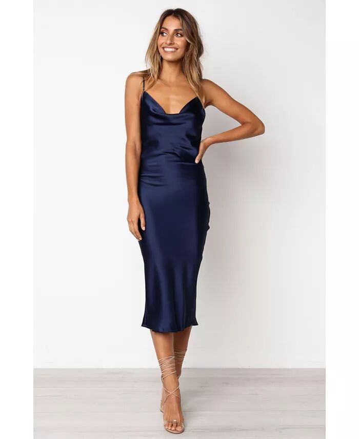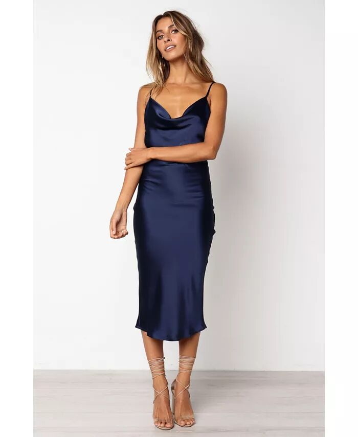 Это платье-хомут длиной миди - идеальное сочетание стиля и изысканности. Его тонкие регулируемые бретели обеспечивают идеальную посадку, а разрез на спине добавляет женственности вашему образу. Шелковистая атласная отделка гарантирует, что вы будете сиять всю ночь!