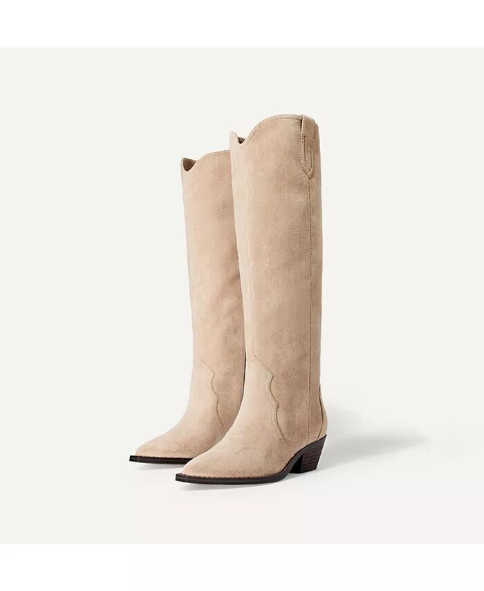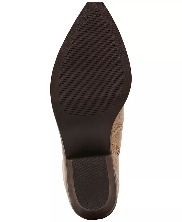Накладные и угловатые каблуки в сочетании с прямым голенищем и острыми носками придают любому образу нотку вестерн в ботинках Kit от DV Dolce Vita.