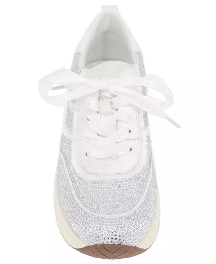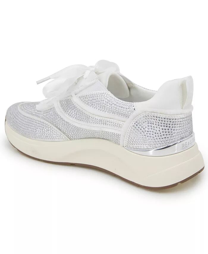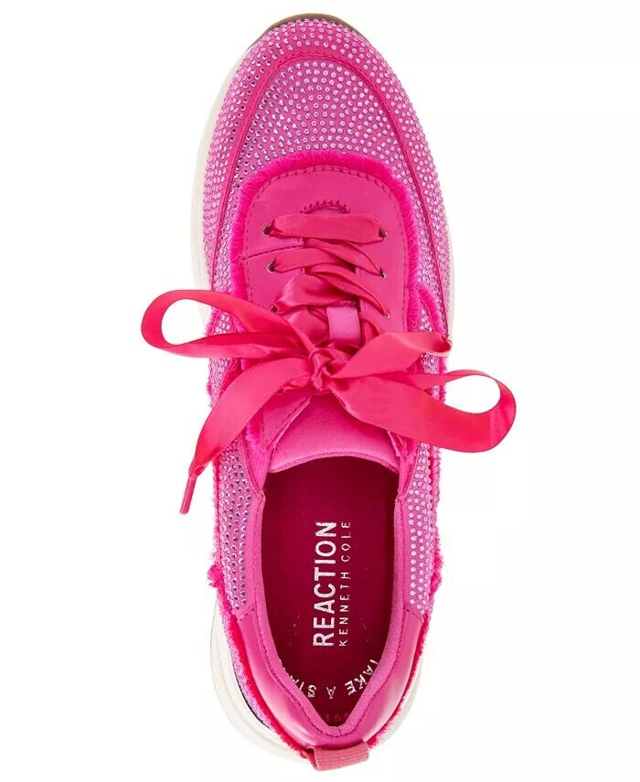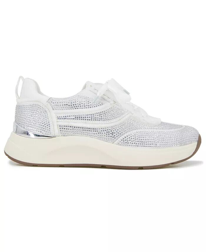 Украсьте свой день этими кроссовками Kenneth Cole Reaction Claire, украшенными сверкающими стразами, с атласными завязками, удобной амортизацией и текстурированной белой подошвой.